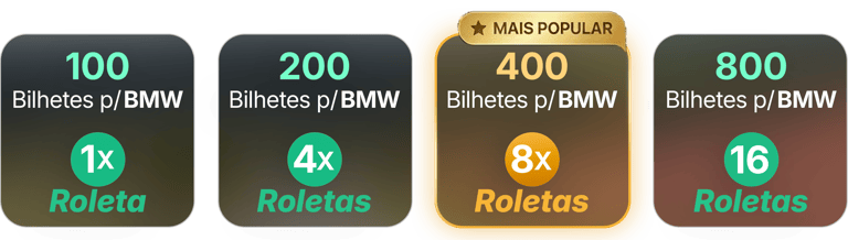 Seus bilhetes concorrem a BMW pela Loteria Federal, e de brinde você ganha giros na Roleta, e mais várias chances de PIX de R$300 e R$500.
